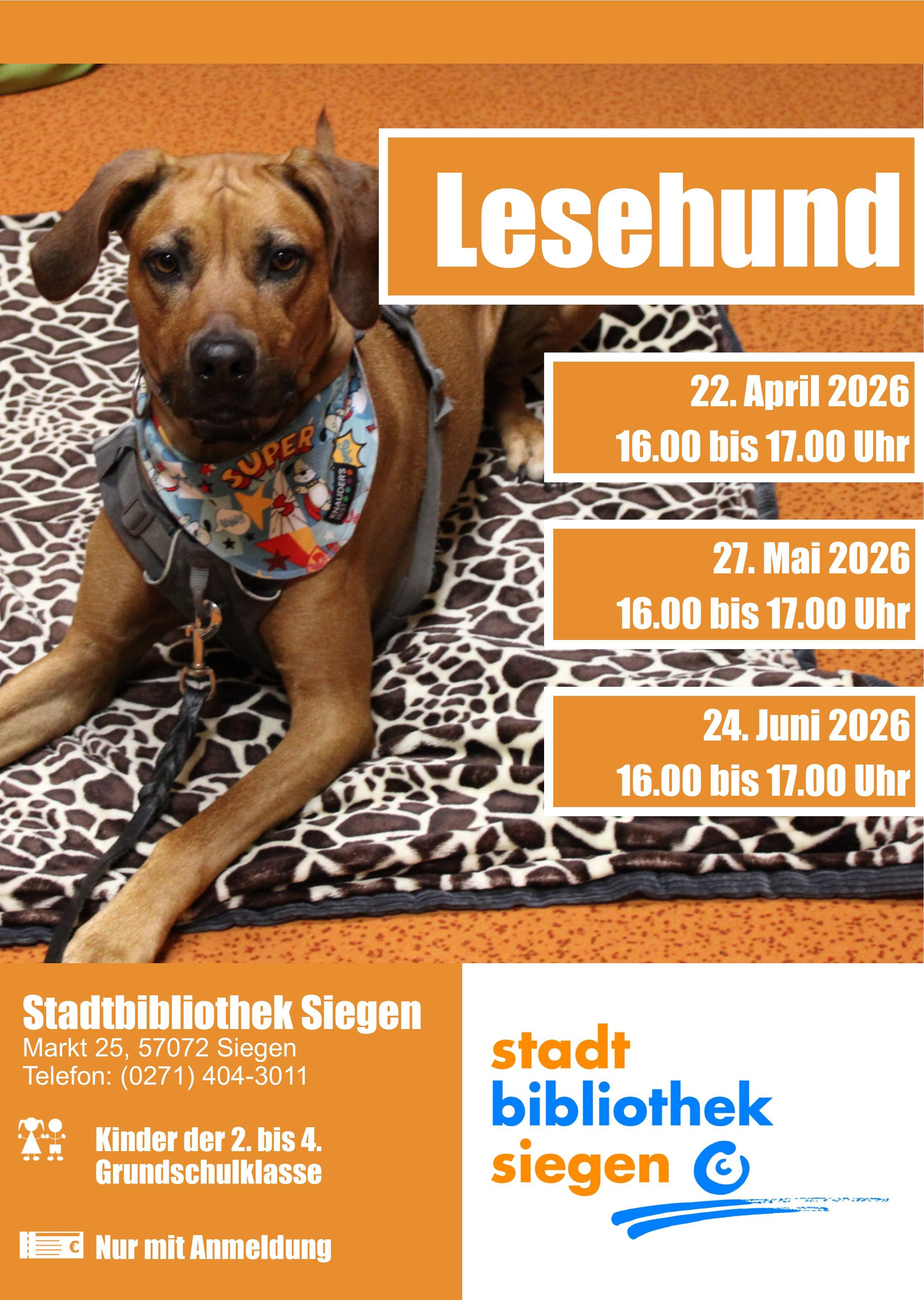 Vorlesen mit Lesehund Laini in der Stadtbibliothek Siegen